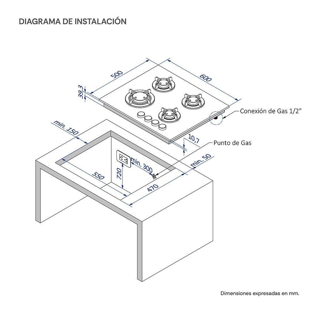• Mesa de cocción: Vidrio Templado